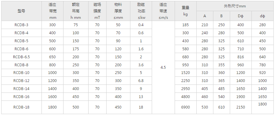 RCDB型自冷盤式電磁除鐵器與PDC系列盤式電磁除鐵器、RCDY系列電磁除鐵器等同。是用于處理粉狀或塊狀非磁性物料中雜鐵的除鐵裝置。其內(nèi)部采用電工專用樹(shù)脂澆注,自冷式全密封結(jié)構(gòu),具有透磁大、吸力強(qiáng)、防塵、防雨、耐腐蝕等特點(diǎn),在惡劣的環(huán)境中仍能可靠運(yùn)行。行走裝置的配備可由客戶自己選擇。