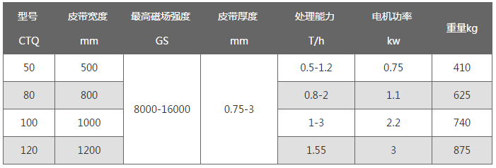 CTQ型系列輥式干式磁選機使用永磁材料,具有高磁場強度、高磁場梯度。磁輥數量可根據客戶要求制作1-10輥。超薄型傳送、分選膠帶。磁輥受傳送帶保護,無磨損,不易退磁。設計入料系統,使入料更均勻,定時定量隨時控制入料。簡單實用的自重式平膠帶張緊、糾偏機械裝置。采用了新型軸向串對斥磁系結構,磁輥表面磁感應強度與電磁感應輥式強磁機相比磁場梯度高3-4倍。無氣隙、物料不阻塞,入選料度最大可達50mm,分選效率高。 安裝、維修及生產運行費用低,操作簡便。主要應用于細粒弱磁性礦物(裼鐵礦、錳礦等)拋尾或精選提純;非金屬礦物(紅柱石、硅線石、藍晶石、石榴石、長石、石英、金紅石、鋯英石、剛玉、金剛石等)原料及產品的精制加工;去除各種磨料產品、催化劑及其它物料中的弱磁性有害雜質。